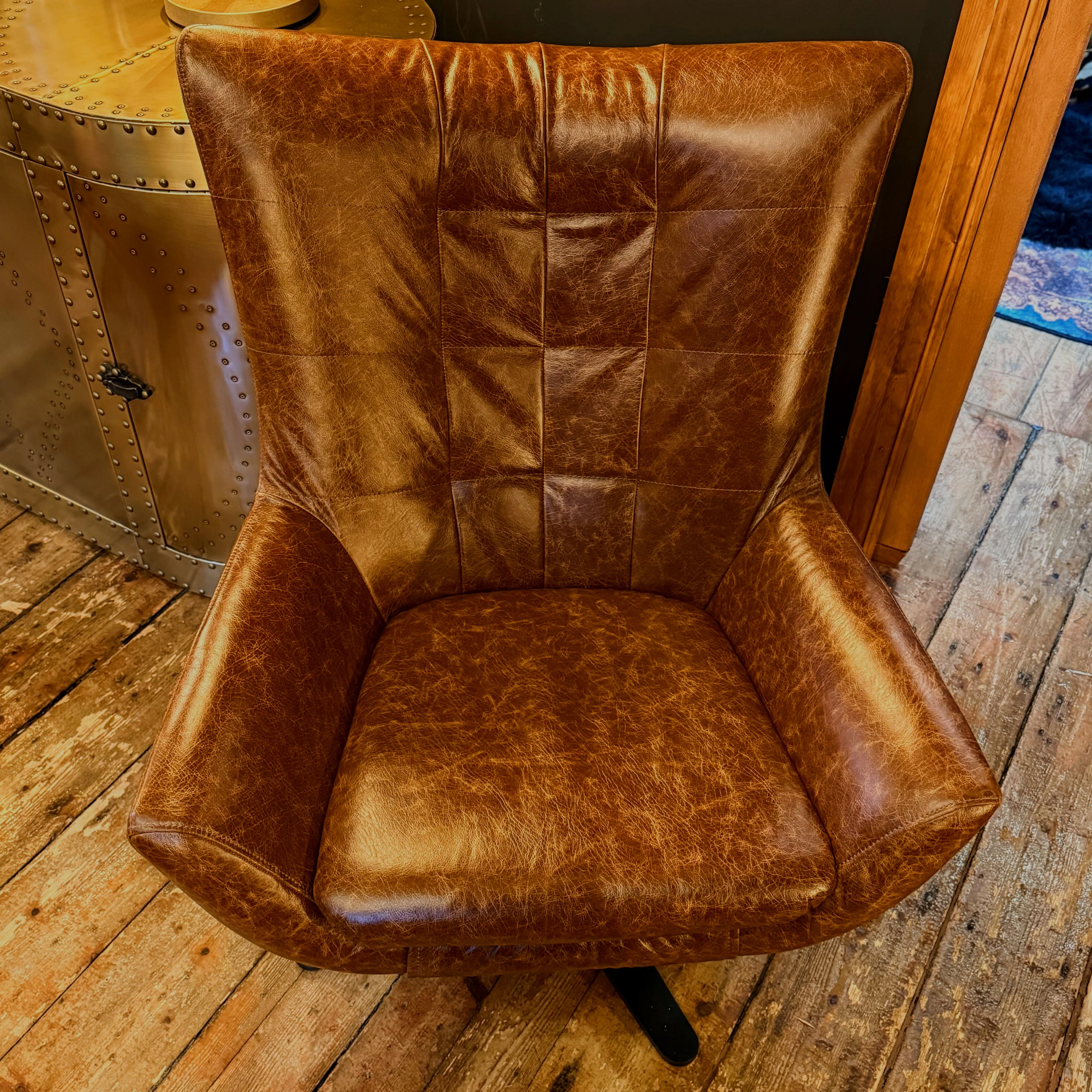The Austin Egg Accent Chair in Leather is a bold, sculptural statement piece that instantly elevates any room. Its iconic egg-shaped silhouette wraps around you in a gentle, cocoon-like curve, offering both comfort and a touch of retro sophistication. Upholstered in sumptuous semi-aniline leather, each chair features natural grain, rich colour depth, and a texture that becomes even more beautiful as it develops a unique patina over time. The smooth swivel base adds modern practicality, making it as functional as it is stylish.