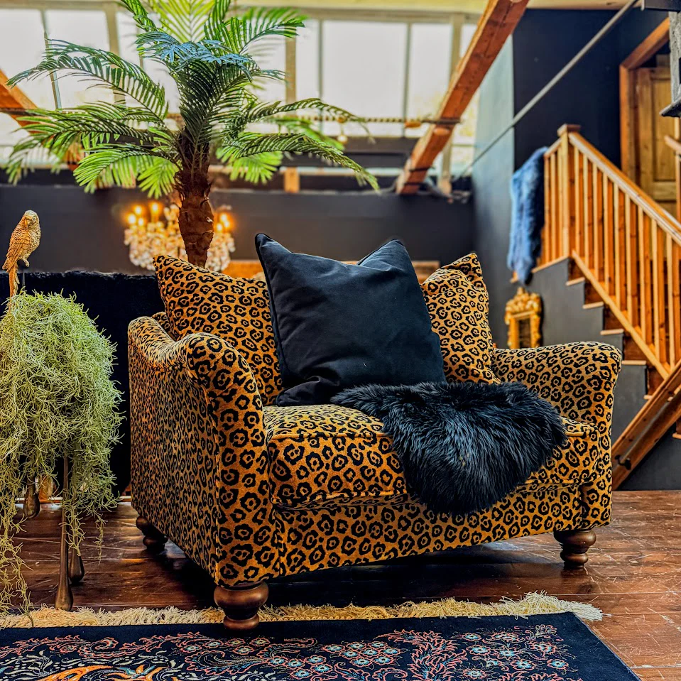 The Bugsby in Animal Print is a bold and beautiful statement sofa that blends classic silhouette with daring modern flair. Upholstered in a sumptuous, animal print velvet, it instantly draws the eye and brings a sense of personality to any space. The gently curved Howard-style arms and camelback profile give it a refined shape, while the plush cushioning with its feather filled scatters and deep seat, deliver comfort worthy of long lounging sessions.
