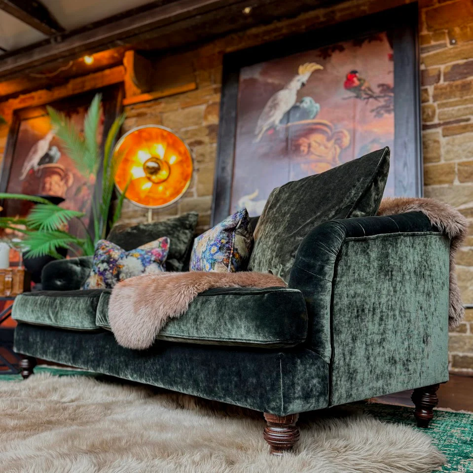 The Dalmore is a stunning Edwardian style sofa with a distinctive camelback and traditional deep buttoning. The slender arm gives generous seating space whilst retaining a compact footprint.