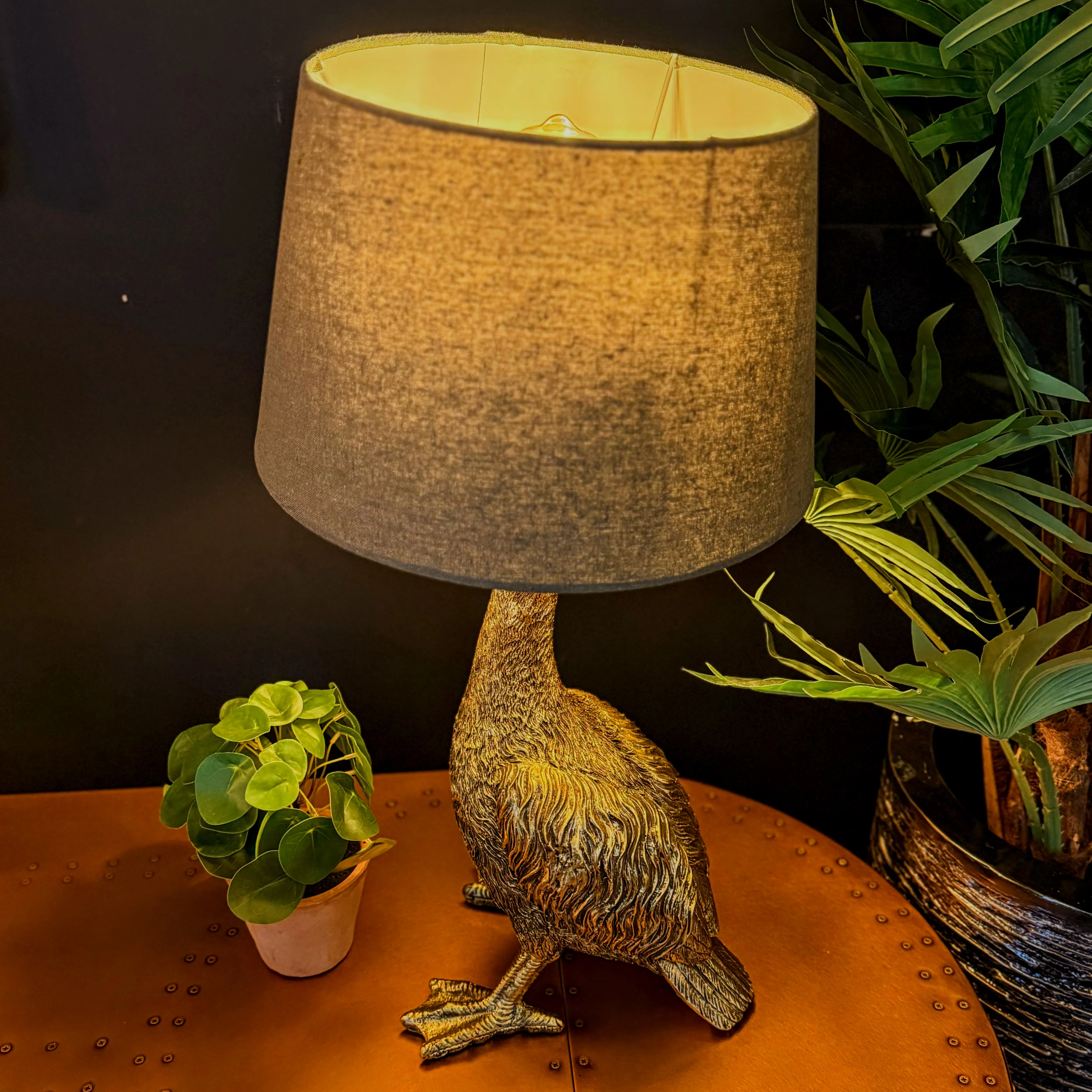 Table Lamp Gold Goose with Grey Shade - Clearance
